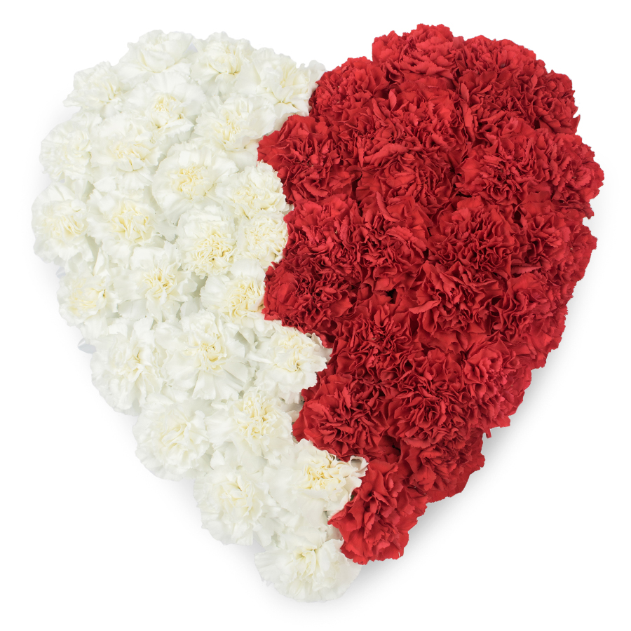 Presenting our stunning Heart-Shaped Carnations arrangement, crafted with care by Handy Flowers. This elegant bouquet features a harmonious mix of white and red carnations, perfect for expressing your sincere sympathies.
